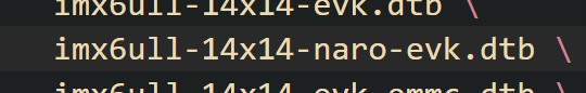 同时,在makefile中,将imx6ull-14x14-evk.dts改成自己的名字,比如:imx6ull-14x14-naro-evk.dts。或者加上一条也行。
